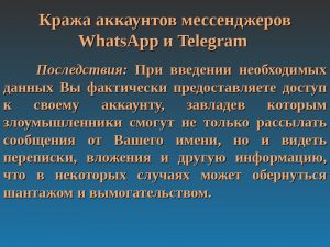 Многие пользователи столкнулись с новой схемой «угона» учетных записей (аккаунтов) в мессенджерах Telegram и WhatsApp.