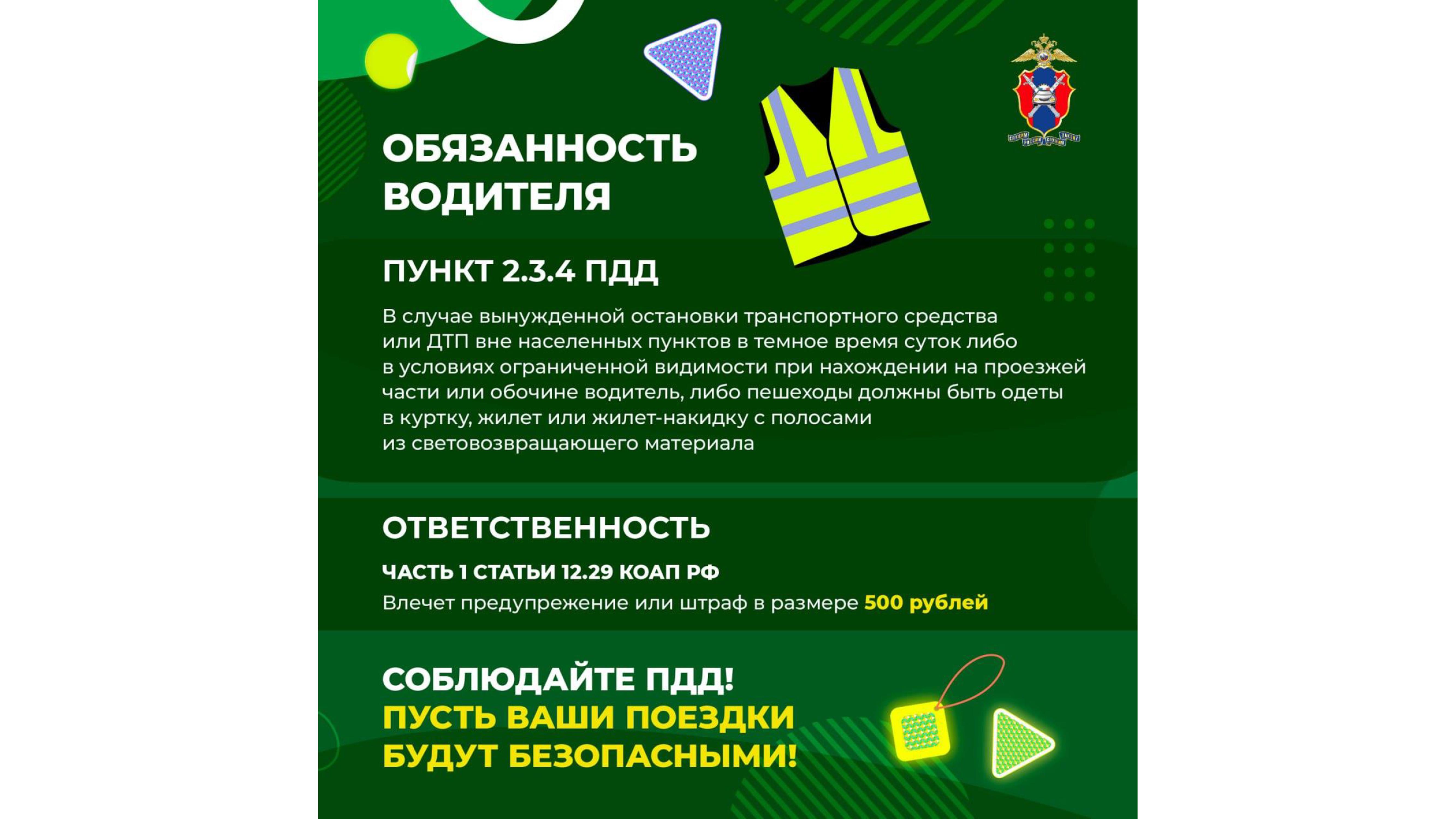 В целях предупреждения наездов на юных пешеходов в условиях, не соответствующих сезону, используйте световозвращающие элементы.