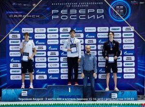 3 место — на дистанции 400 м в/стиль (юноши 15-16 лет) с результатом 3:50.03.
