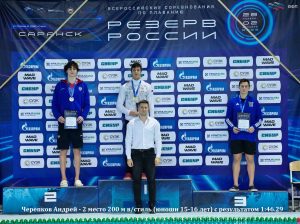2 место — на дистанции 200 м в/стиль (юноши 15-16 лет) с результатом 1:46.29;
